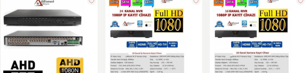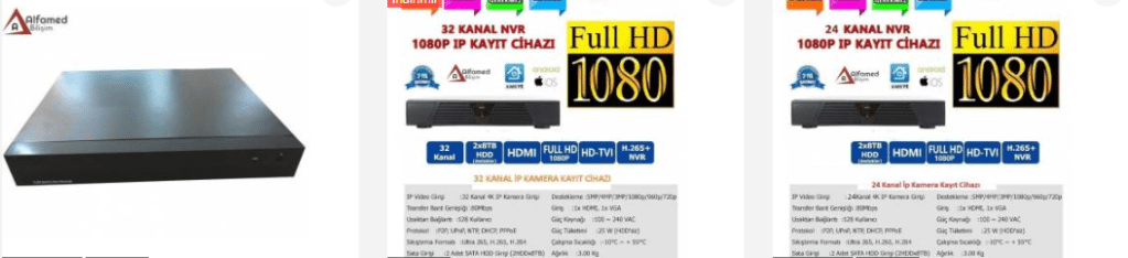 - 1080p görüntü kalitesi olan kameraları desteklemektedir.